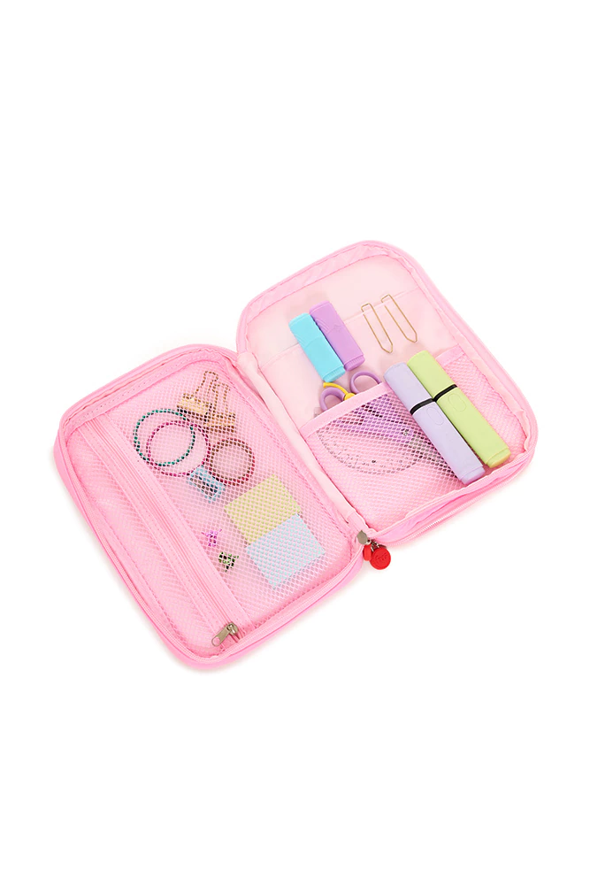 Organizador bloom. Cuenta con bolsillo exterior de PVC, un primer compartimento con bolsillo de red con cierre y 2 bolsillos abiertos, y un segundo compartimento con 24 elásticos regulares que facilitan la organización de accesorios o útiles. Perfecto para combinar estilo y practicidad en el día a día. Consultanos por el modelo que desees :)