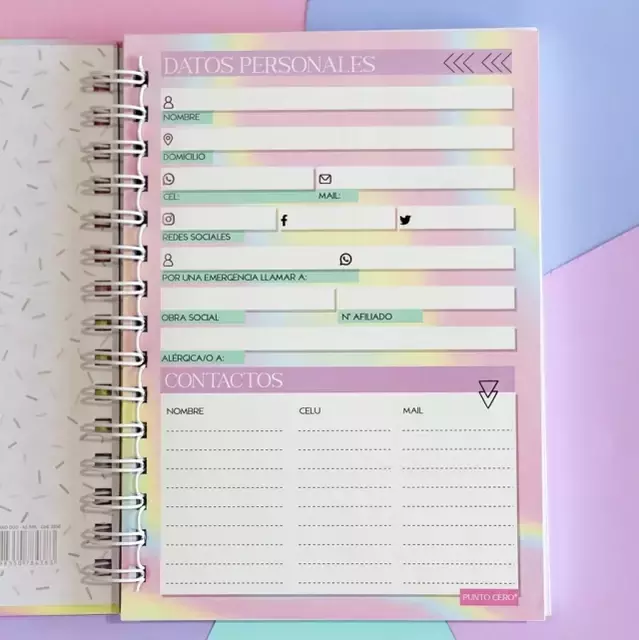 Tiene doble tapa y doble carátula (con organizador anual). Lo podés comenzar del lado que quieras. Es para dos materias!