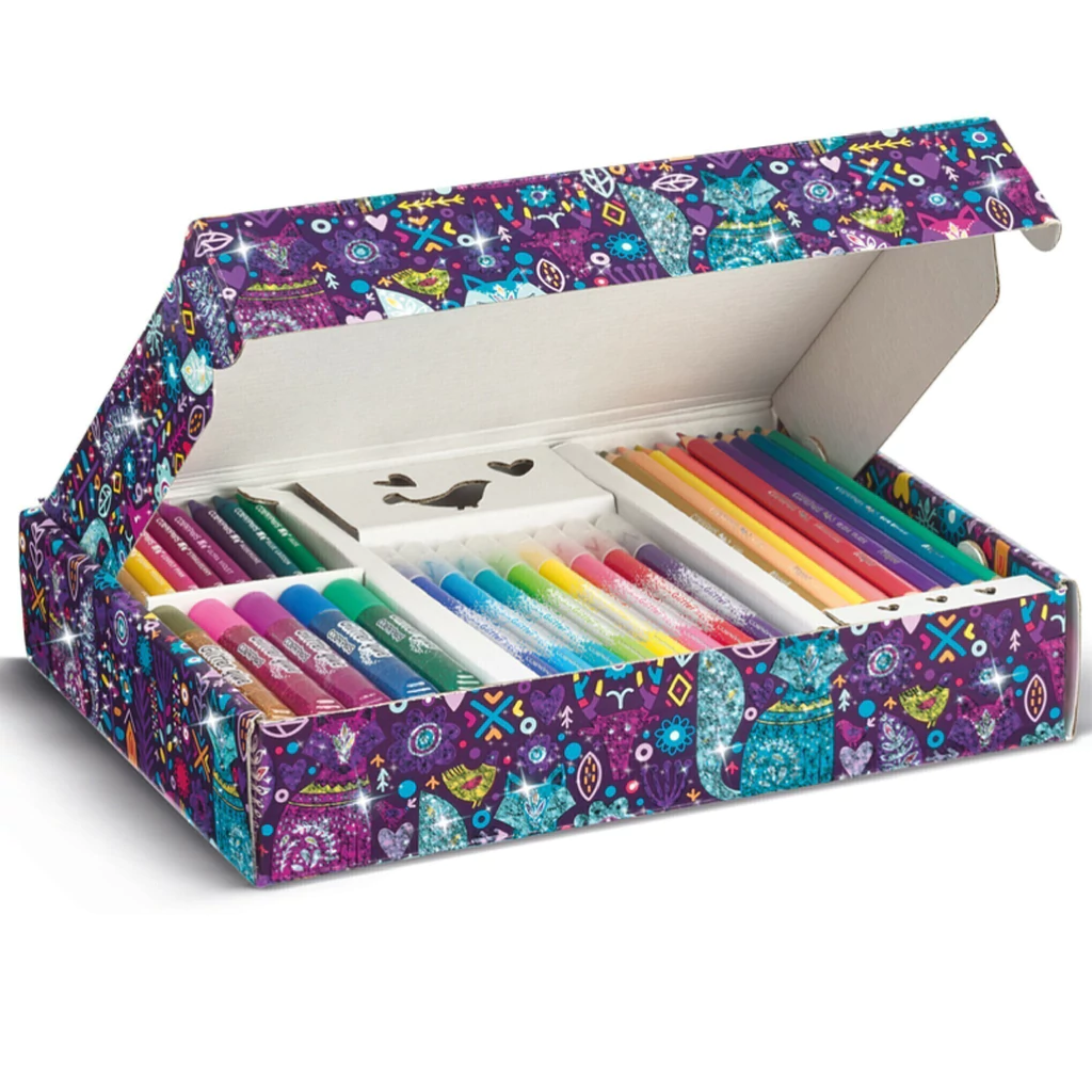 ¡Un kit para colorear moderno y rico en brillo que brinda a los niños muchas posibilidades para dibujar, crear y dejar volar su imaginación!